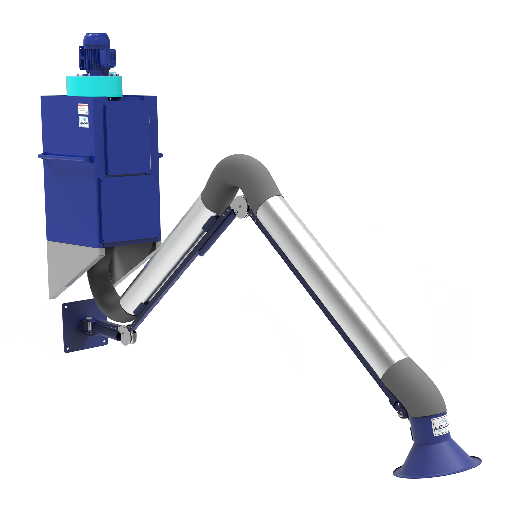 El DAG 1500-CV es un brazo aspirador articulado con rotación de 180°, movimientos en tres ejes y mecanismos internos de balanceo. Diseñado para la captación puntual de humos y gases en áreas de trabajo industriales.