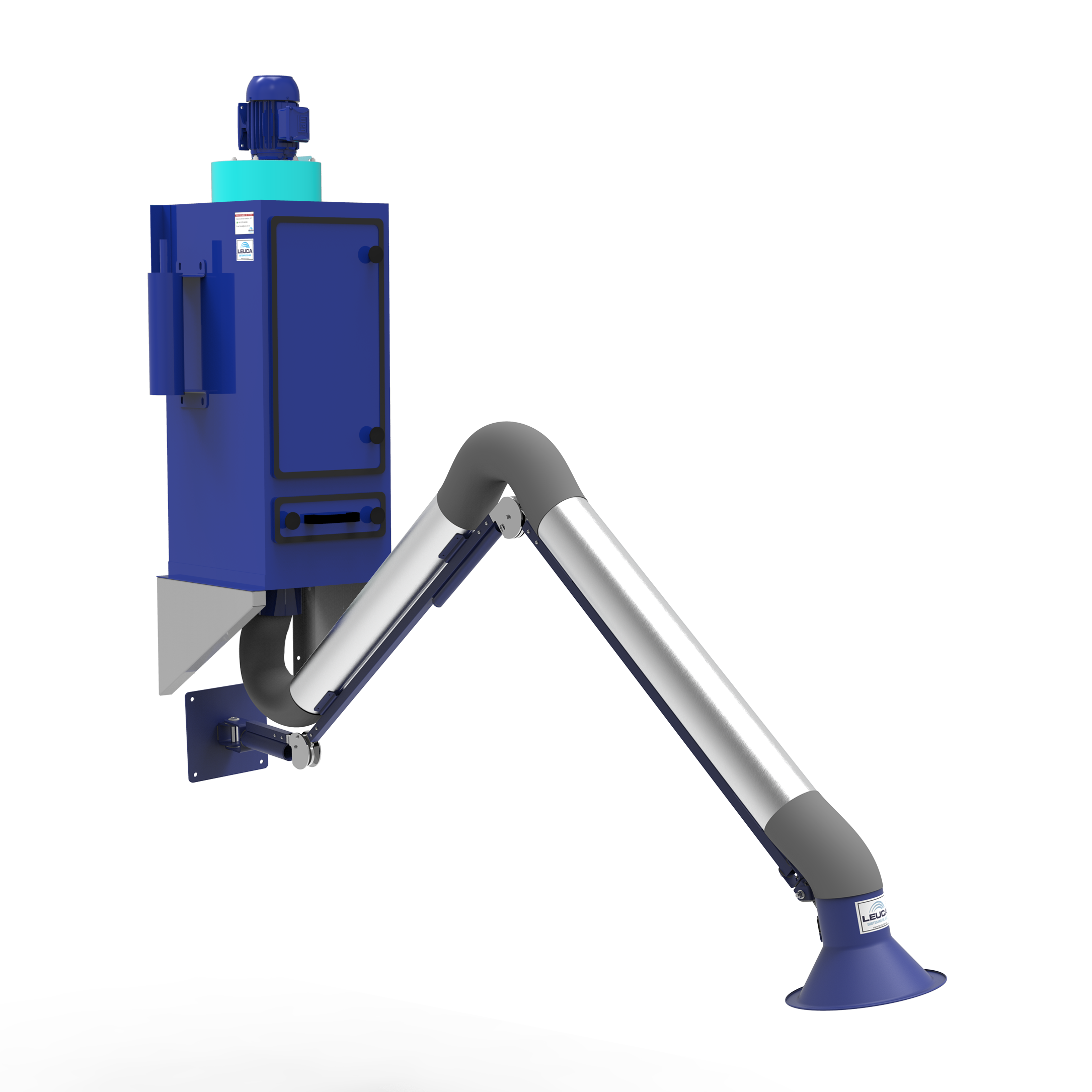 Según el modelo, los sistemas pueden funcionar como brazos de aspiración independientes o como colectores de humos con filtración incorporada, integrando filtros de cartucho con limpieza automática por retropulsor de aire o filtros tipo casette, además de ventiladores centrífugos tipo sirocco acoplados directamente a motores eléctricos monofásicos o trifásicos.