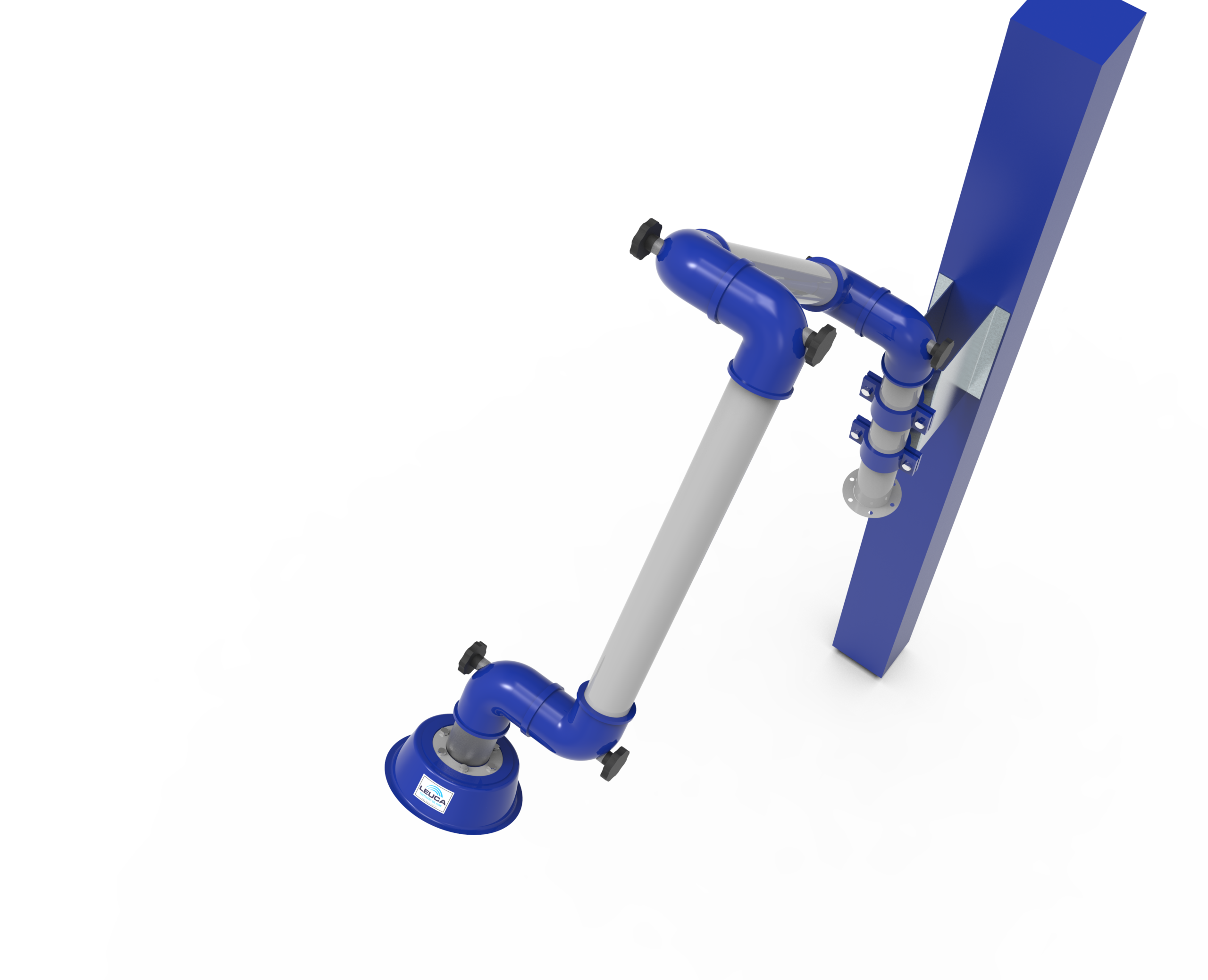 El DAG 2000-B es un brazo aspirador articulado de alto desempeño, con rotación de 180° y movimientos en tres ejes, equipado con mecanismos internos de balanceo que permiten una operación fluida y precisa.