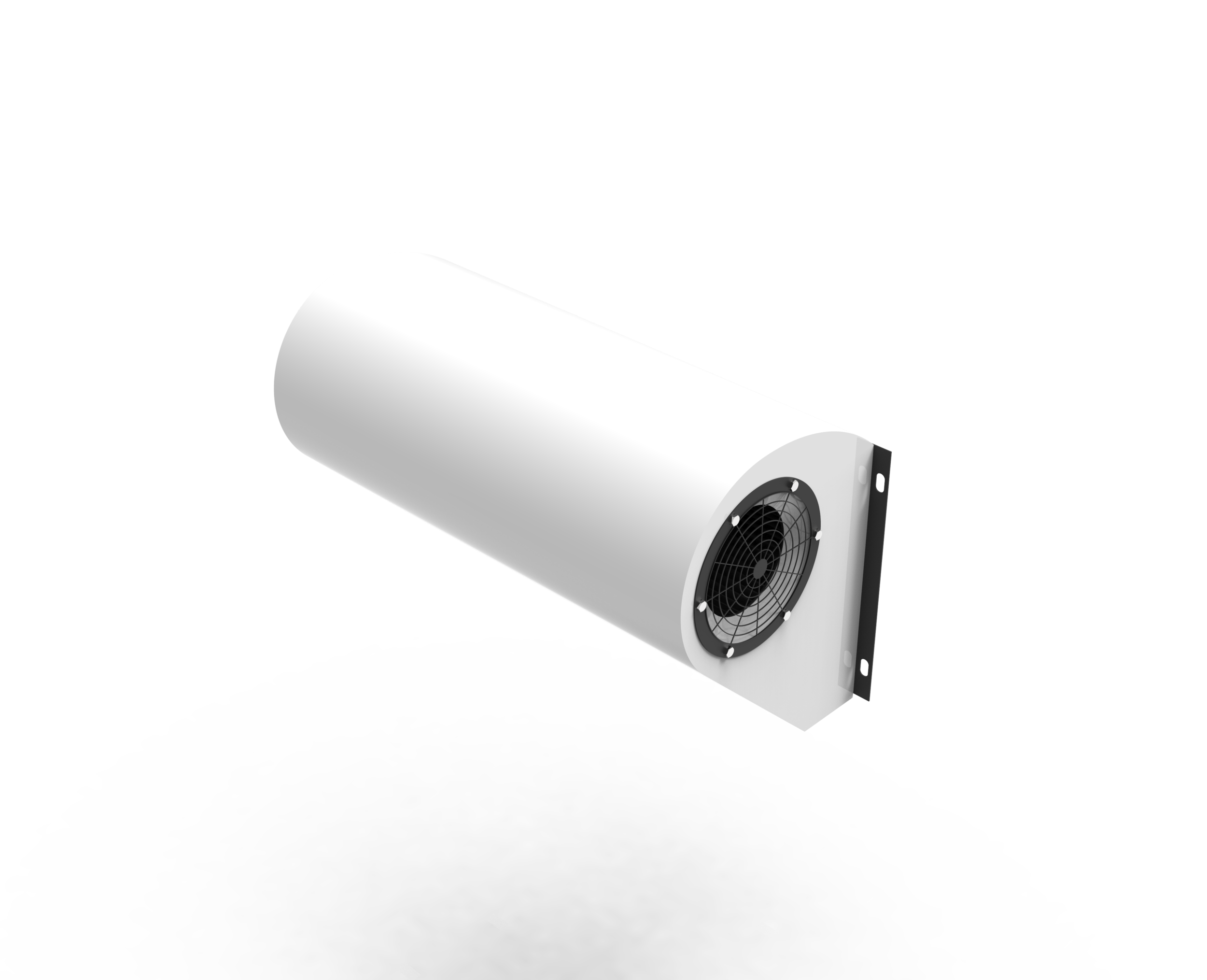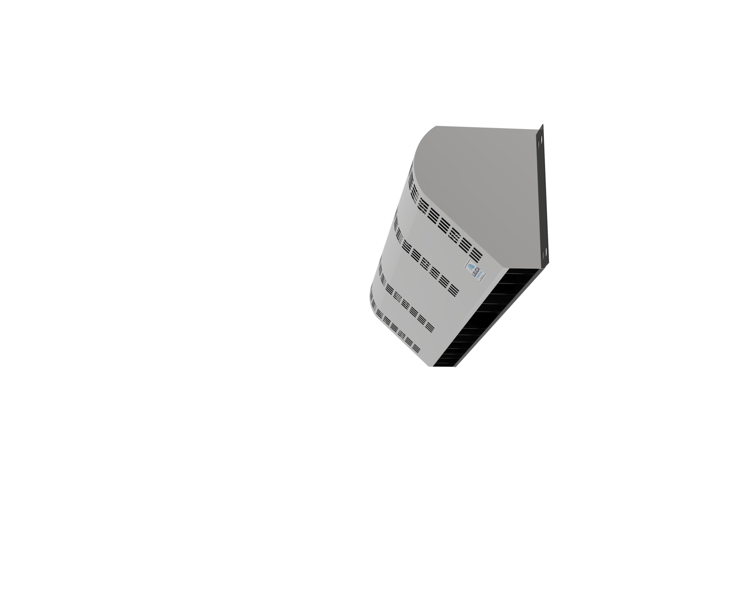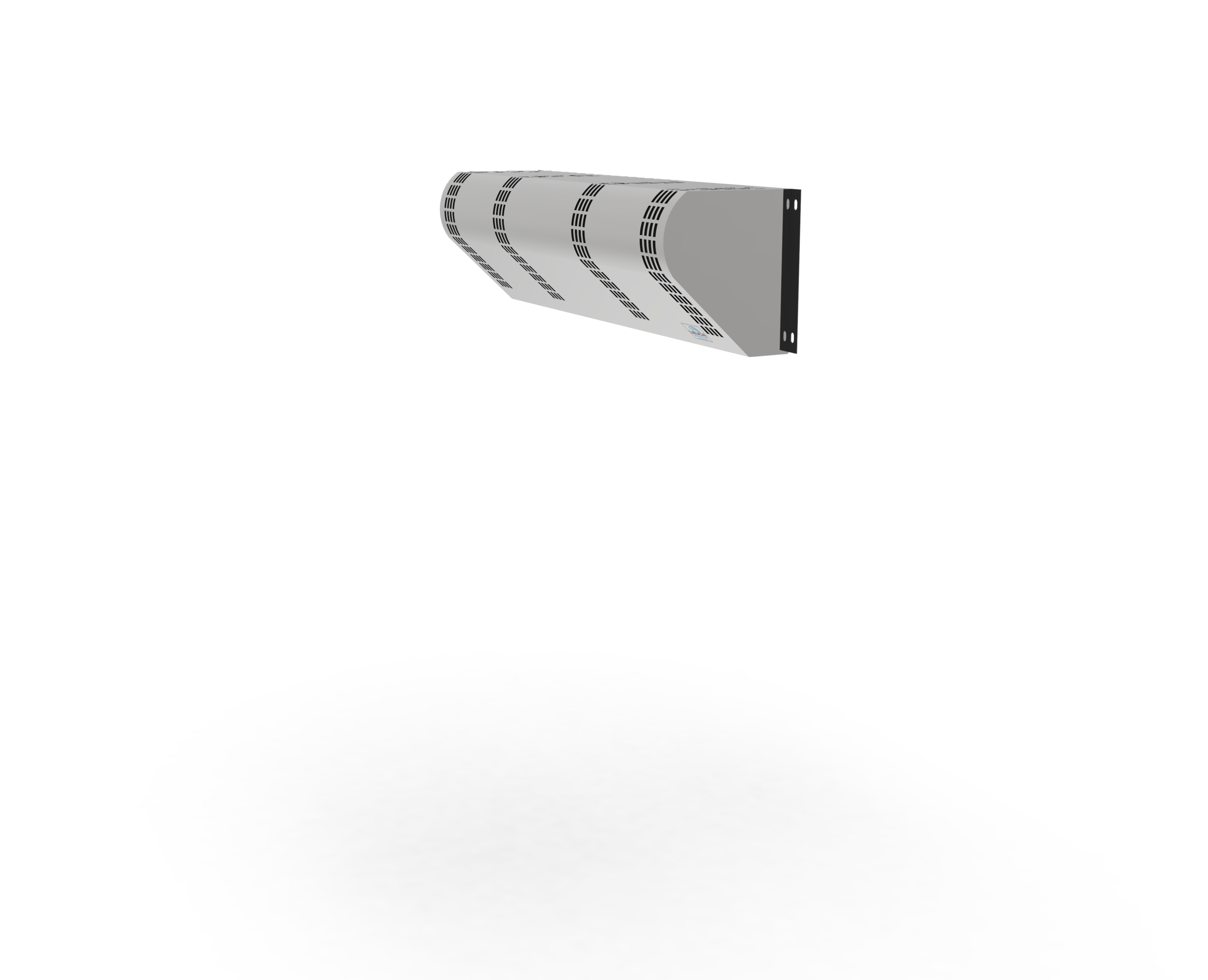 Cortina de Aire Natural de diseño compacto, fabricada en chapa SAE1010 con pintura epoxi-poliéster (opcional en acero inoxidable). Flujo lateral, ideal junto a techos y paredes. Diez versiones para alturas de 2,40 m, 2,80 m y 4,00 m en 0,70 m de ancho.