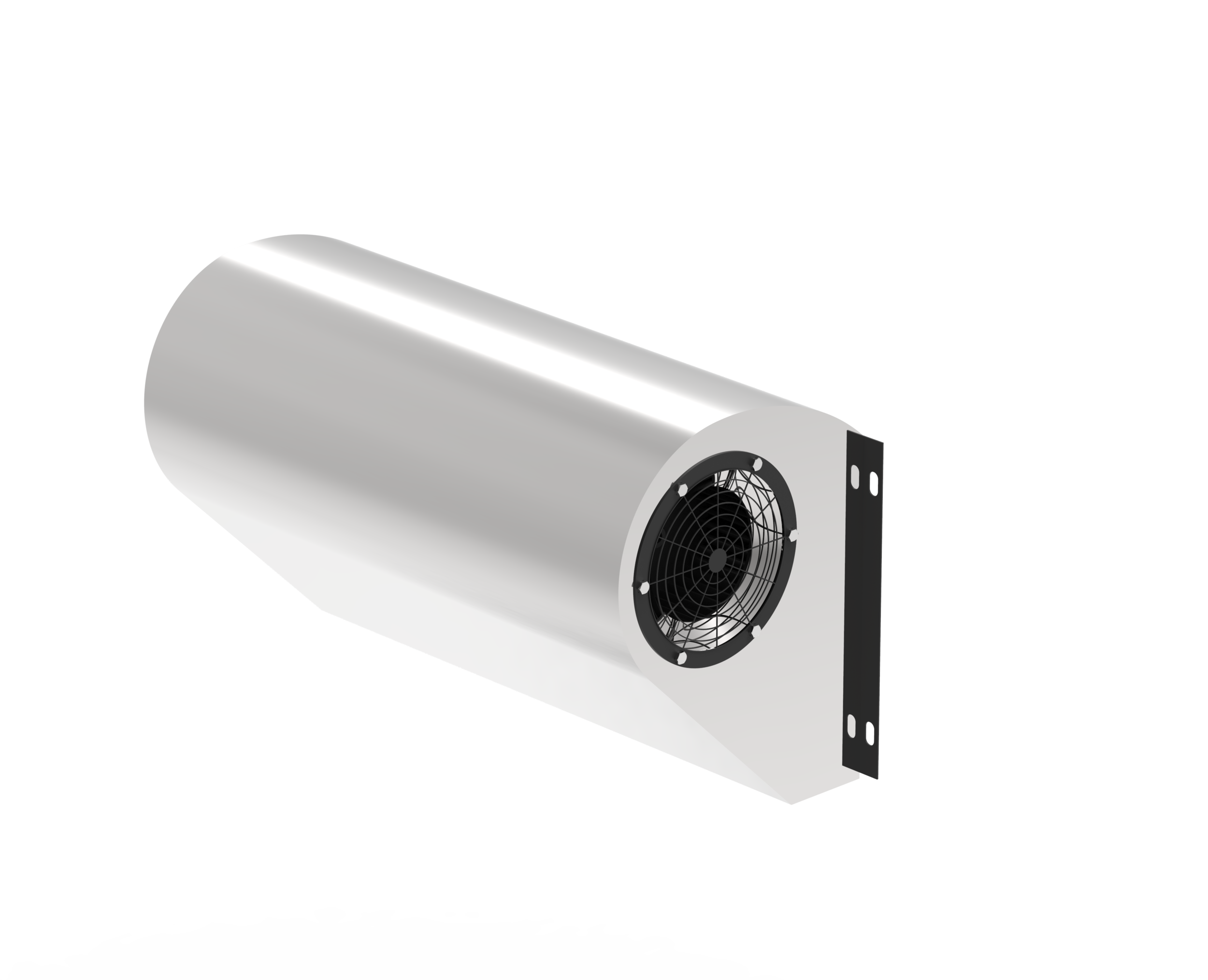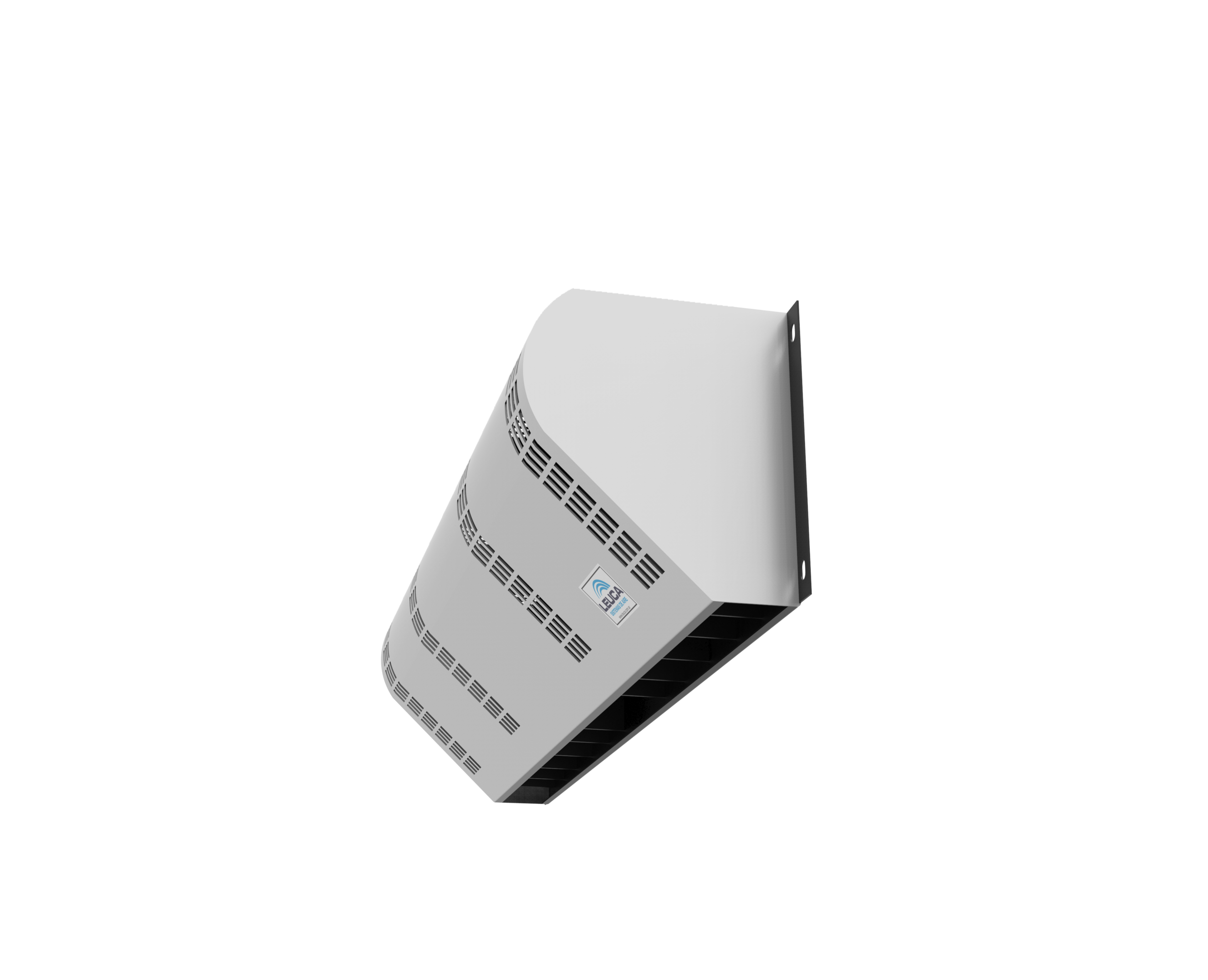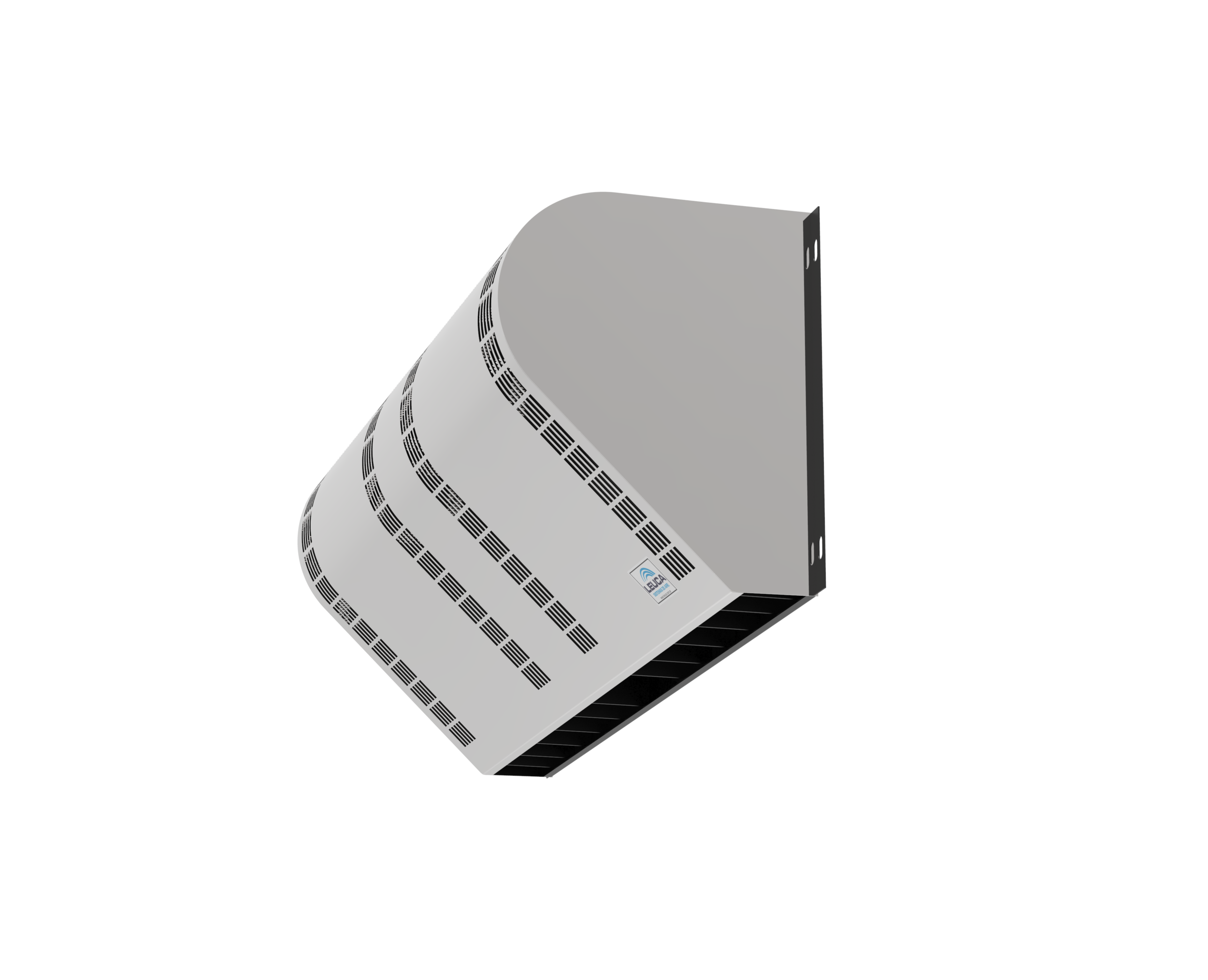 Cortina de Aire Natural de diseño compacto, fabricada en chapa SAE1010 con pintura epoxi-poliéster (opcional en acero inoxidable). Flujo lateral, ideal junto a techos y paredes. Diez versiones para alturas de 2,40 m, 2,80 m y 4,00 m en 0,70 m de ancho.
