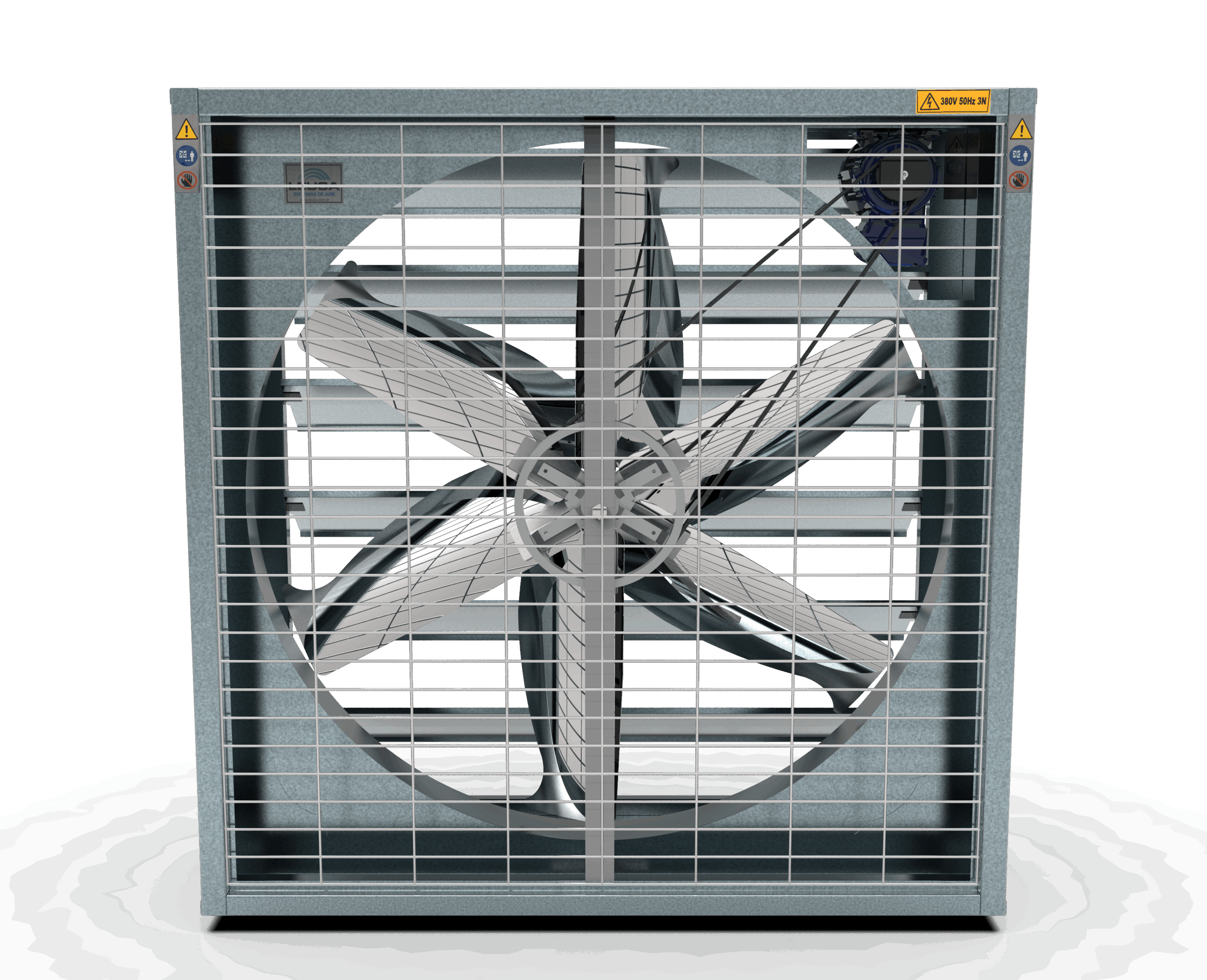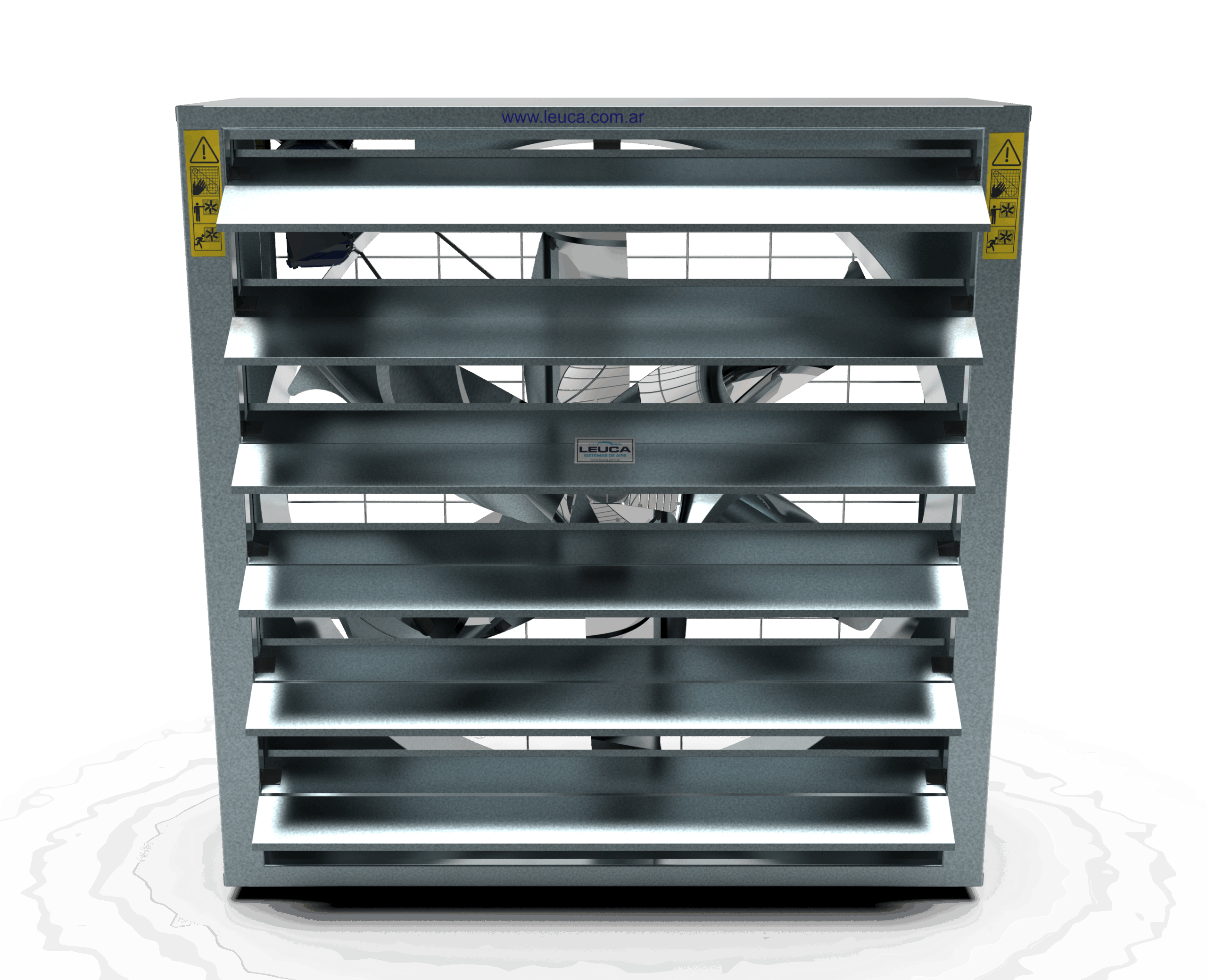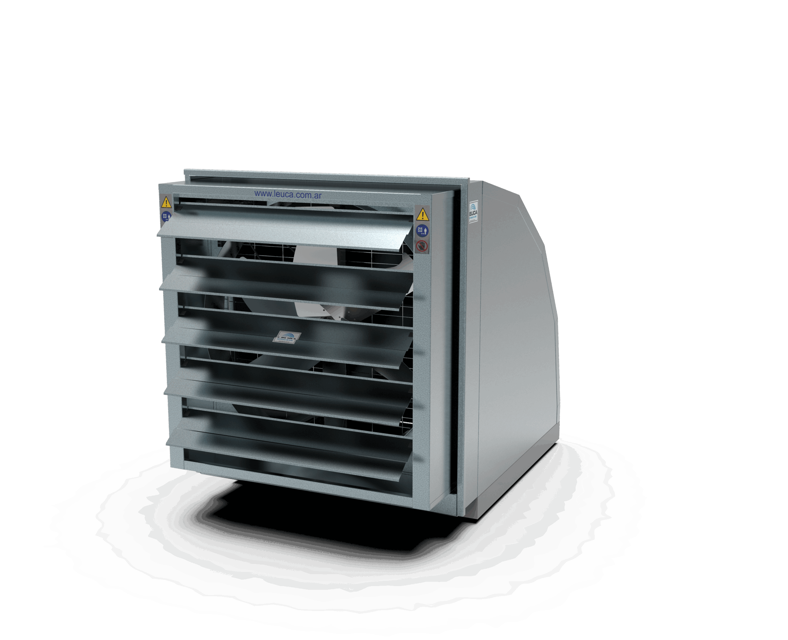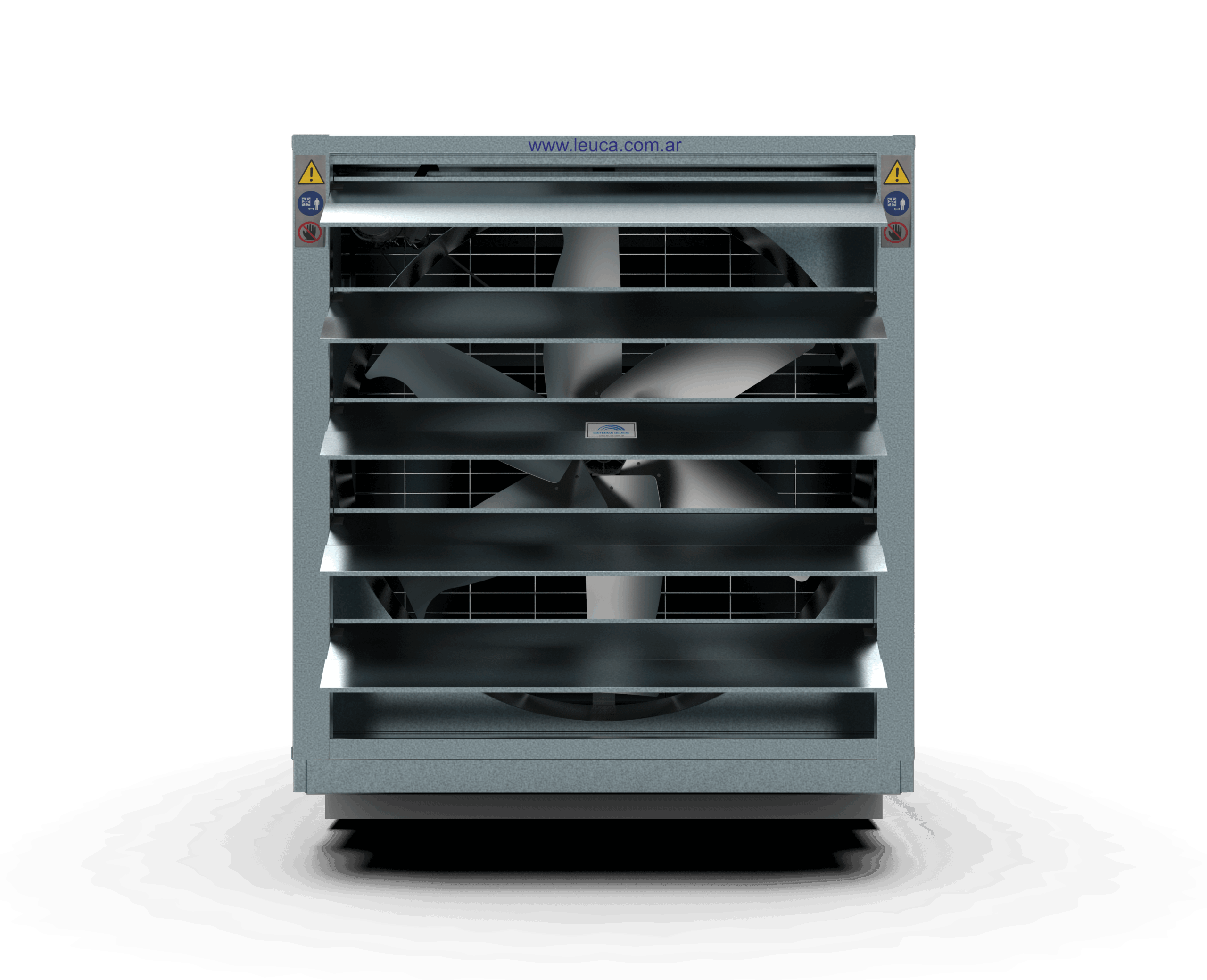 Desarrollado para galpones y grandes superficies, este modelo incluye un gabinete de acero galvanizado con persiana frontal de apertura automática. Ofrece un excelente caudal con bajo nivel sonoro y mínimo consumo energético.