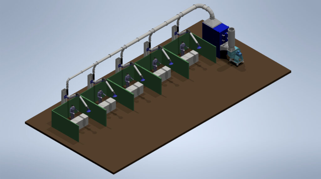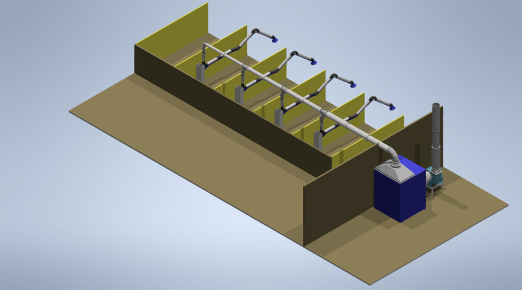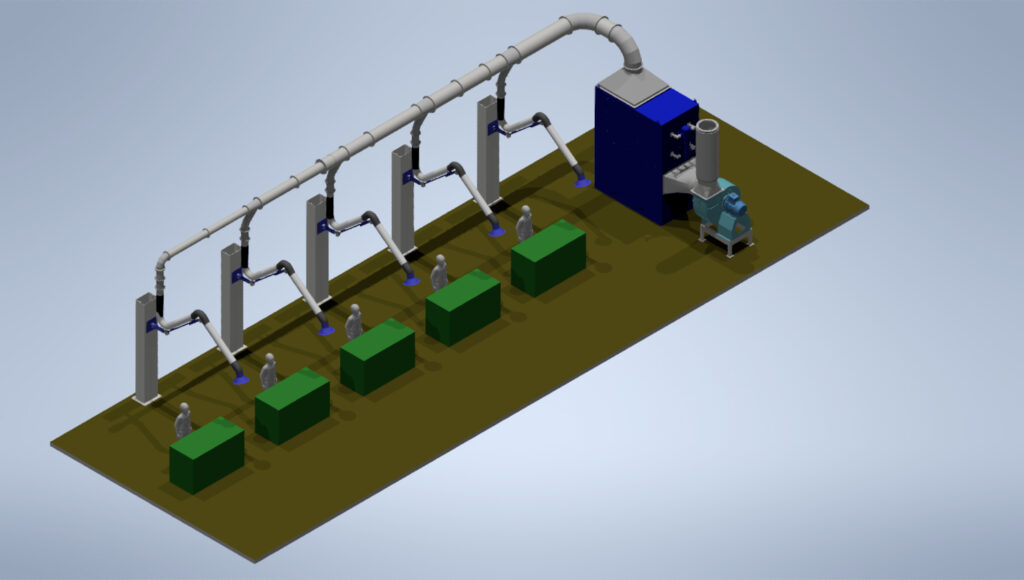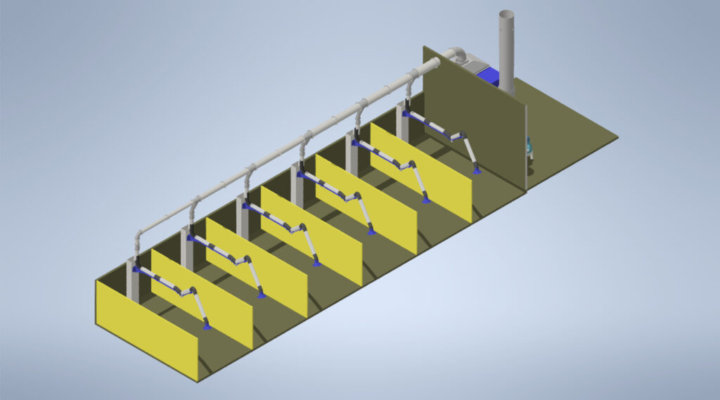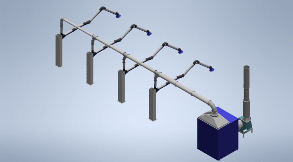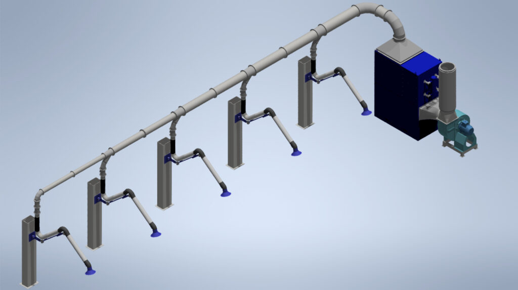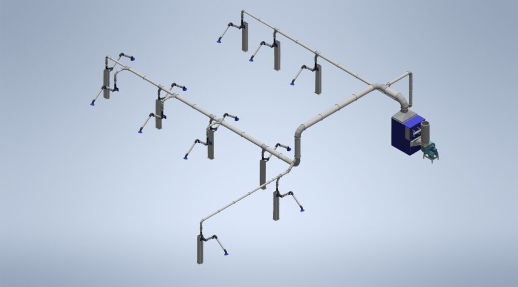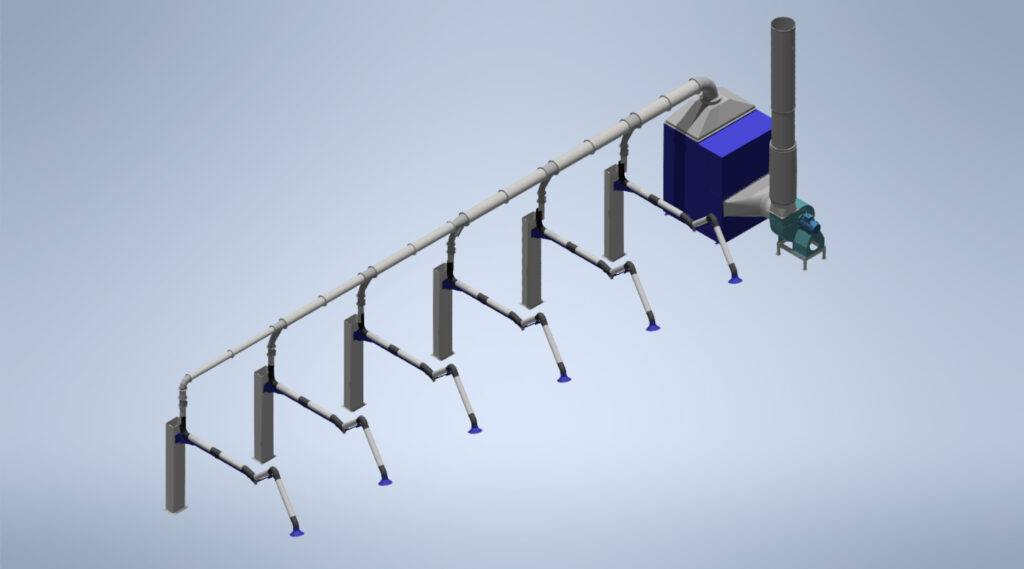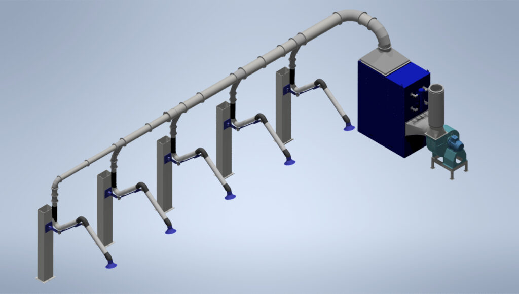 Los sistemas LEUCA de aspiración local, capturan humos y polvos de soldadura directamente en su origen, evitando su dispersión. Son cruciales para una aspiración eficiente en entornos con múltiples puestos de trabajo, destacando por su eficiencia operativa, de inversión y medioambiental. Las imágenes muestran diferentes proyectos realizados por los profesionales del área de ingeniería y diseño de LEUCA para sus clientes.