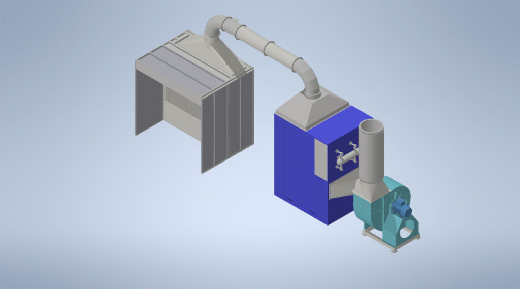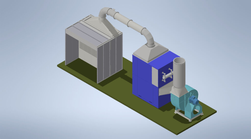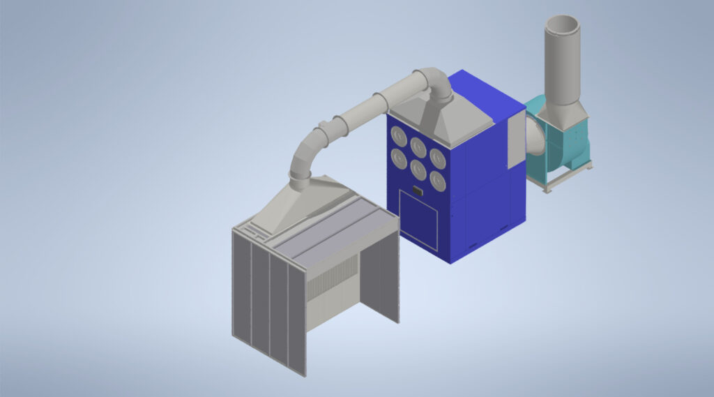 Los proyectos incluyen cabinas con sistemas de aspiración y filtrado, adaptándose a diversas necesidades como operaciones de amolado, lijado, corte con plasma manual o lijado de madera. Los sistemas pueden incorporar ciclones de alta eficiencia, colectores filtrantes con cartuchos autolimpiantes y componentes como ventiladores, silenciadores y tuberías.